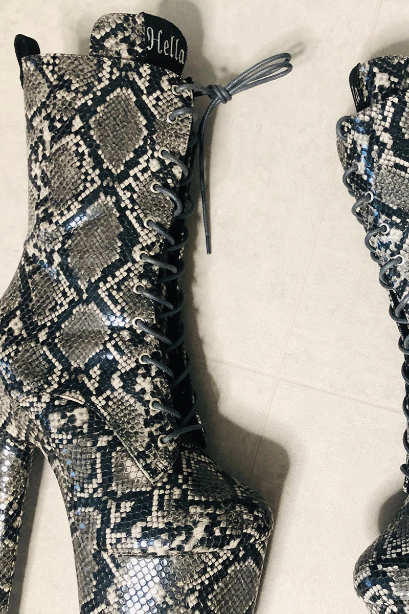 Introducing Hella Heels – a new brand of shoe on the block. Platforms are developed for a strong pointe and sleek lines as you dance, and platform fabrics are stitched to last longer and look slicker. Lower eyelets are spread out slightly more than further up for an arched aesthetic. Pull tab and tongue tab detailing in a luxe faux suede.