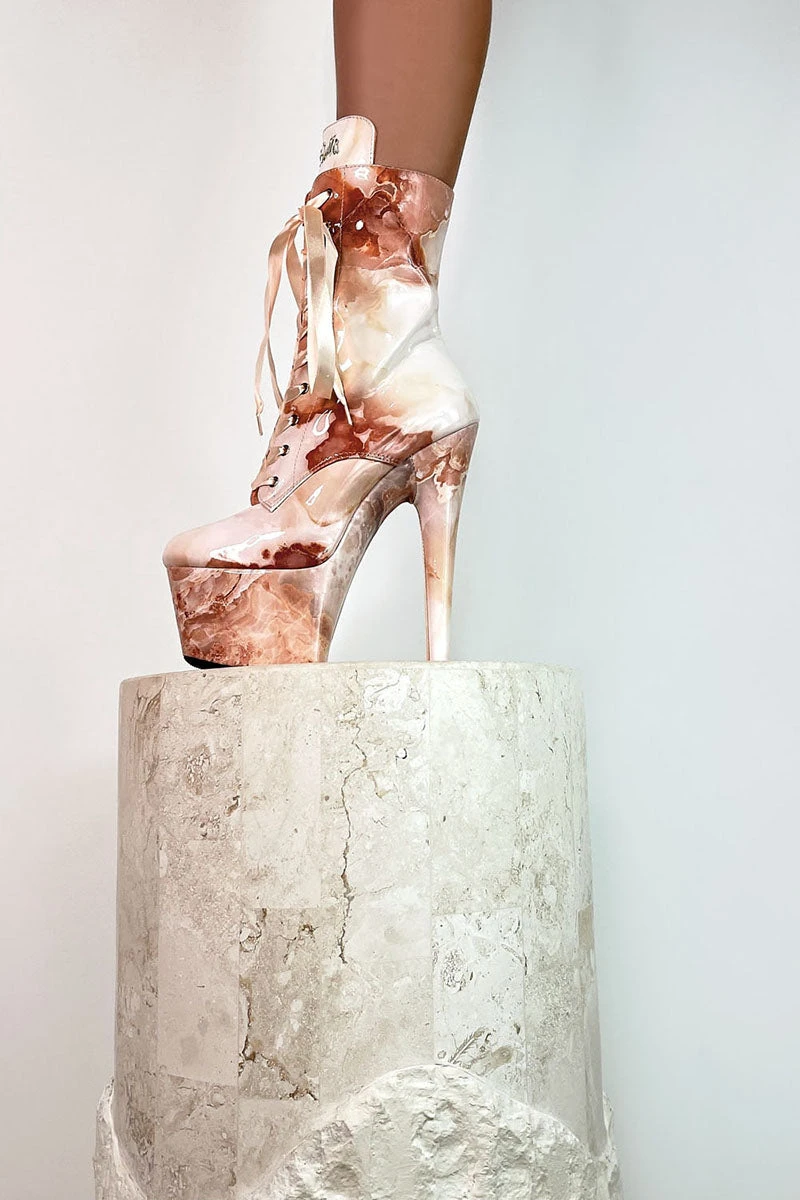 Heavenly Hues, Soft and Rich mix of Pink Opal-esque marble with soft peach Ribbon laces to elevate the look.