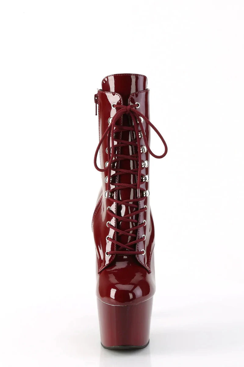 - Patent Mocha Platform, Lace-Up Front Ankle Boot, Inside Zip Closure