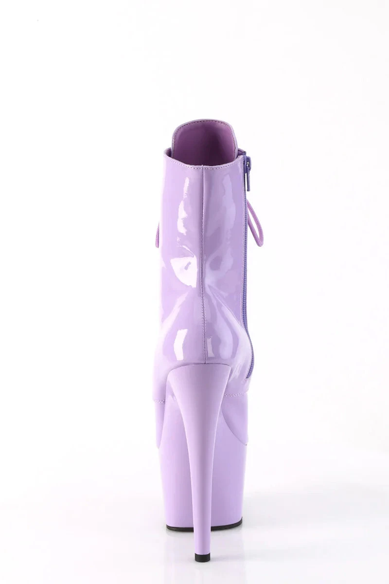 - Patent Lavender Platform, Lace-Up Front Ankle Boot, Inside Zip Closure
