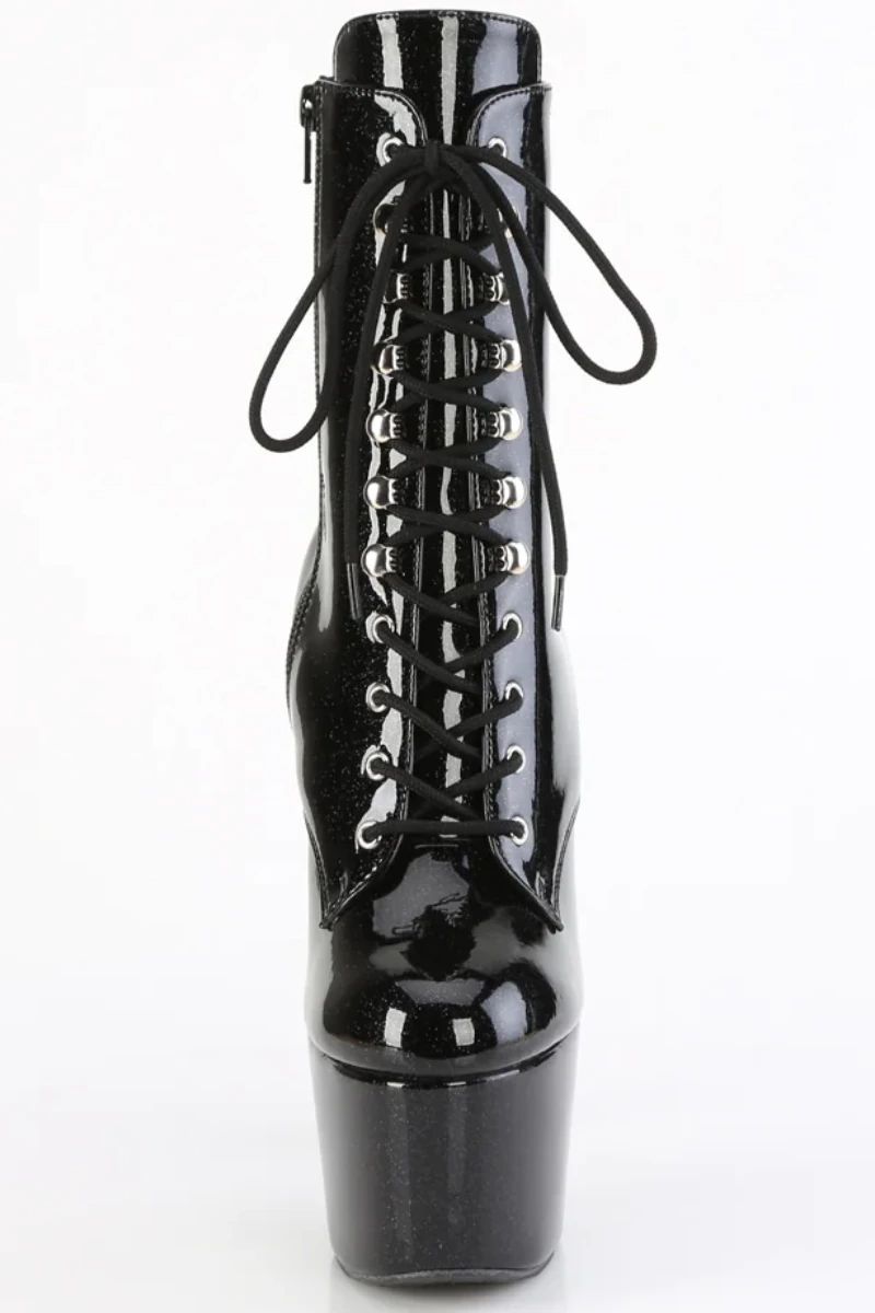 - Black Glitter Platform | Lace-Up Front Ankle Boot | Inside Zip Closure