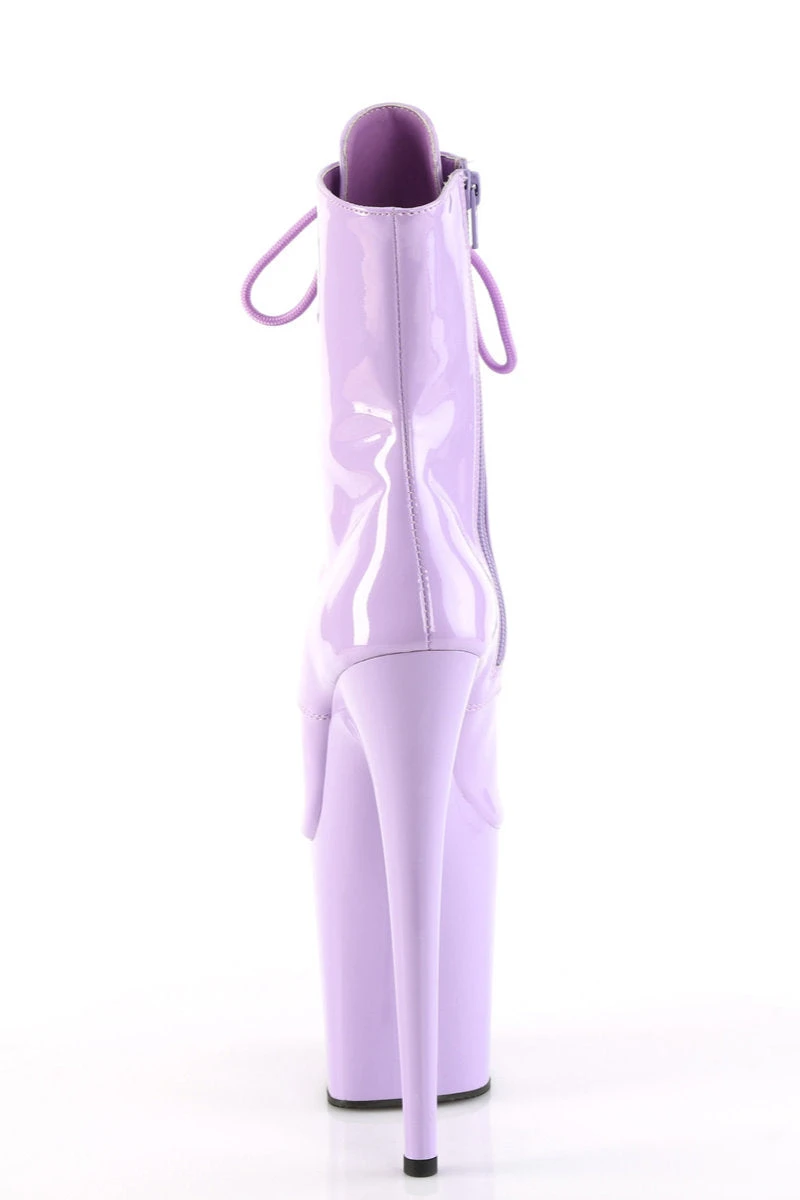 - Patent Lavender Platform, Lace-Up Front Ankle Boot, Inside Zip Closure