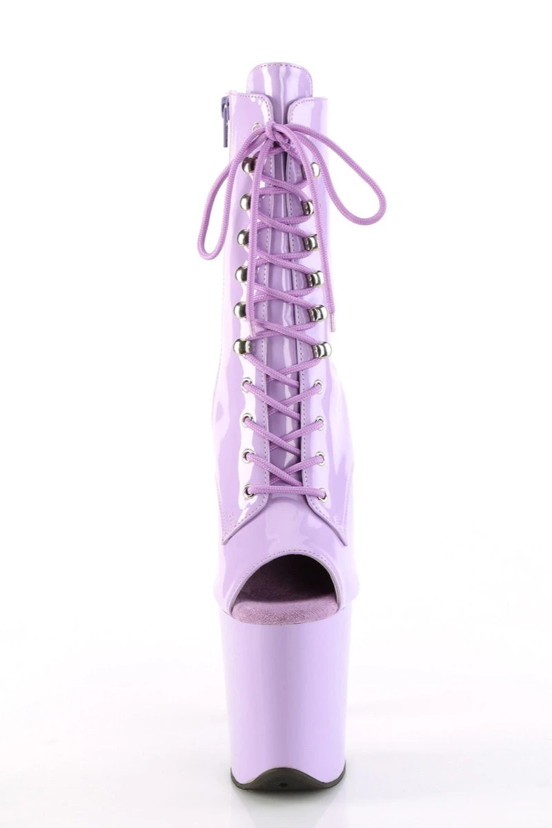 - Patent Lavender Platform, Lace-Up Front Ankle Boot, Inside Zip Closure