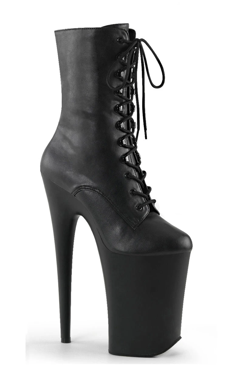- Matte Black Platform Lace-Up Front Ankle Boot, Inside Zip Closure